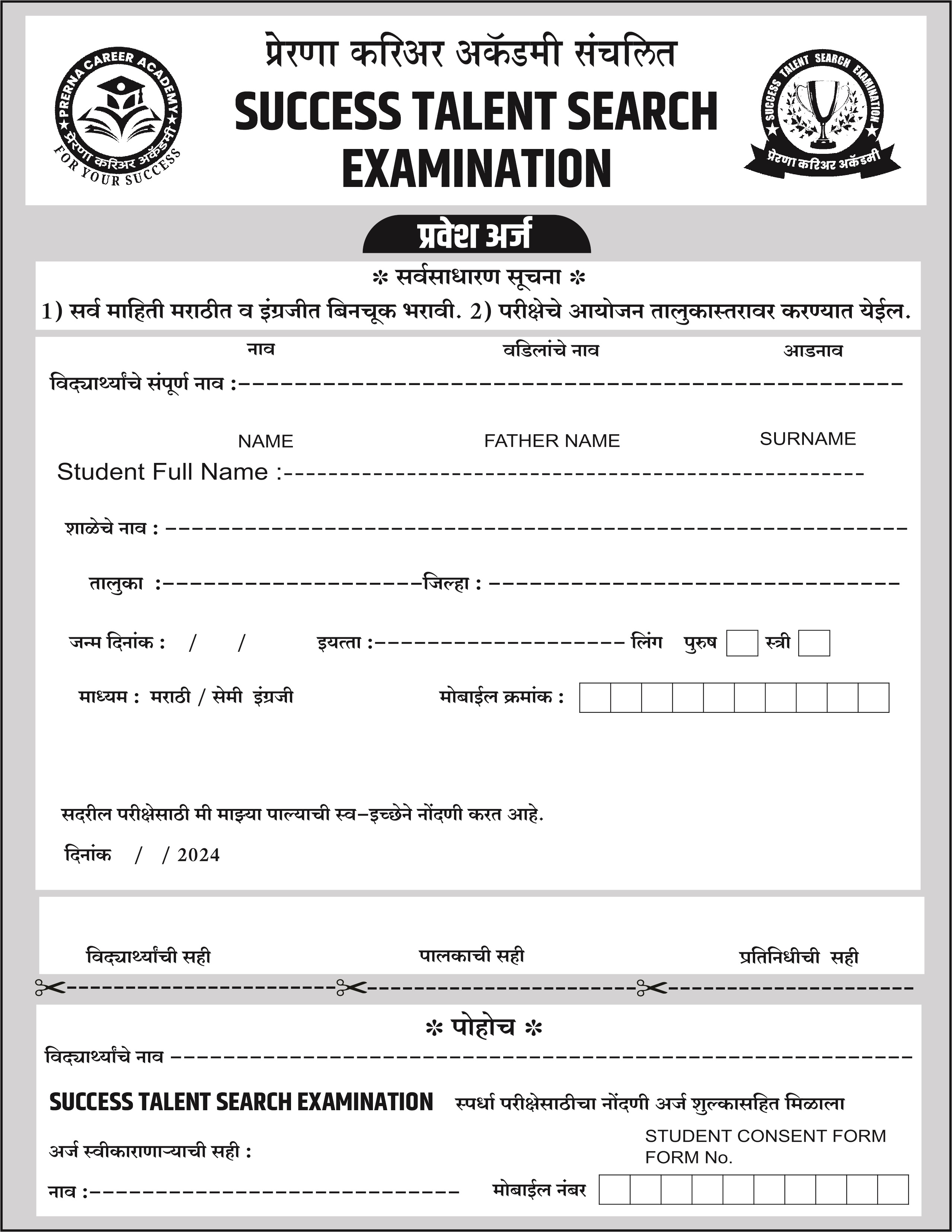 Honorable parents Powered by Prerna Career Academy State Level Intelligence Competition Exam